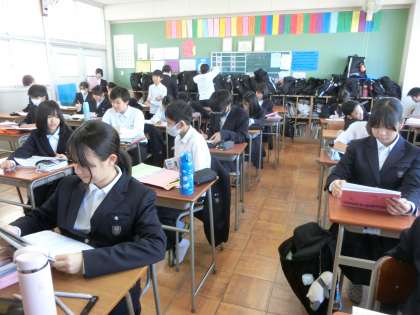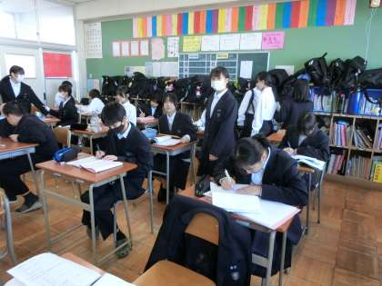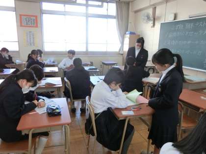 1年生の皆さんがテスト直前の学習に取り組んでいます。今日・明日の2日間、期末テストに臨みます。1時間目は「国語」のてすと。教科書やプリント、便覧などに目を通す人が多い模様。50分間、集中して頑張ってくださいね。