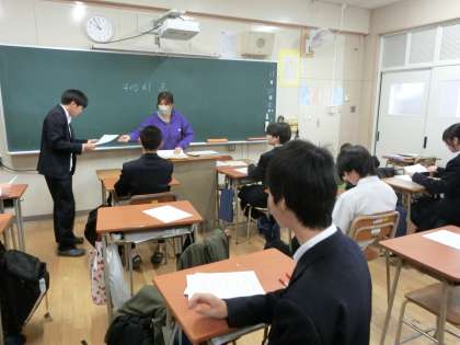昨日まで行われていた2学期末テスト。早速テスト結果が返ってきました。2年生の教室では国語のテストが返却されています。1人ずつ先生から解答用紙が手渡されます。予想以上の好成績に喜ぶ姿が見られました。努力が実って本当に良かったですね。