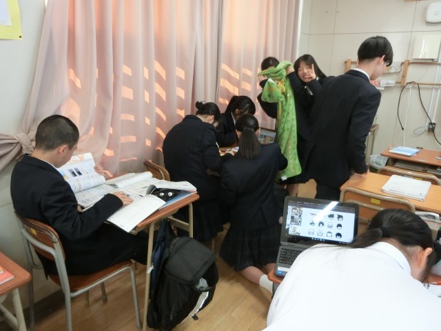 2年生英語の授業で「好きなものランキング」をまとめています。食べ物や動物、映画など「好きなもの」を聞き取り、結果を英語のフリップにしてまとめます。いろんな意見が出てきて、とても面白そう。みなさん楽しく取り組んでいますね。