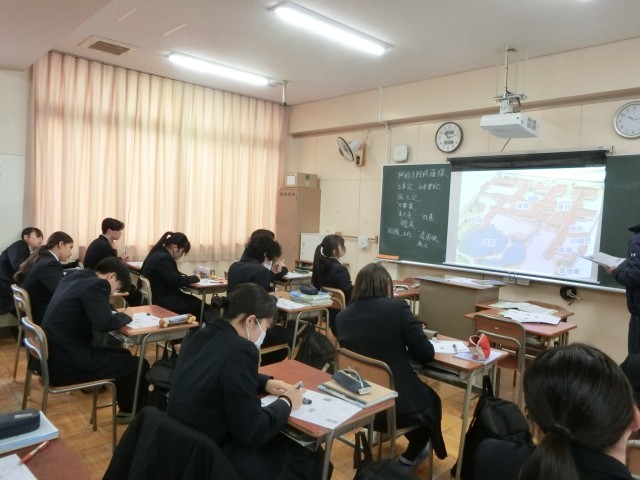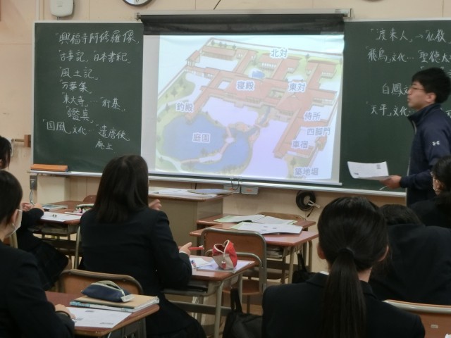 3年生社会科の授業で平安時代の文化を復習しています。遣唐使の停止により、海外の影響を受けない日本独自の文化「国風文化」が栄えました。建築では「寝殿造」とよばれる貴族の邸宅が建てられました。岩手県平泉に残る中尊寺金色堂は寝殿造の建造物として有名ですよ。