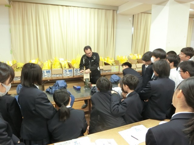 1年生技術科で取り組んでいる木材加工の製作実習。今日は木材を削る工具「かんな削り」を教わります。かんな削りは木材の寸法(サイズ)を整えたり、平らになめらかに仕上げるために必要な作業。使い方がけっこう難しいので、繰り返し練習して技術を磨きましょう。