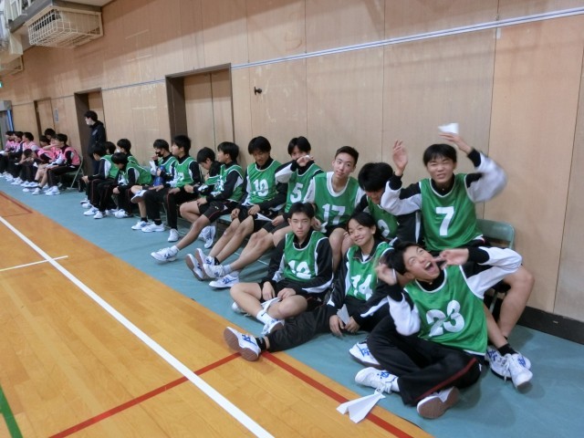 体育館の壁際に、各クラスの応援席が設けられ、それぞれクラスメイトの活躍にエールを送ります。見事、勝利した選手には大きな歓声と温かい拍手が。クラス一丸となって応援しましょう!!