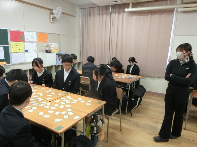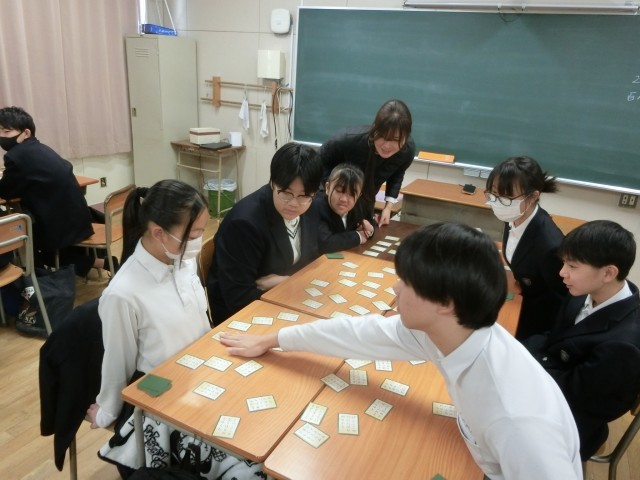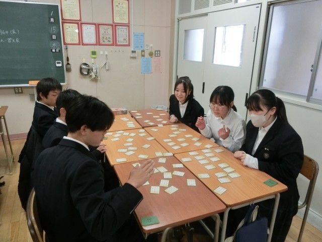 2年生国語科で「百人一首」の練習が行われています。来月6日(金)の午後、学年で「百人一種大会」を開催するとのこと。大会までの約3週間、しっかり練習を重ねて、より多くの札を獲得してくださいね。