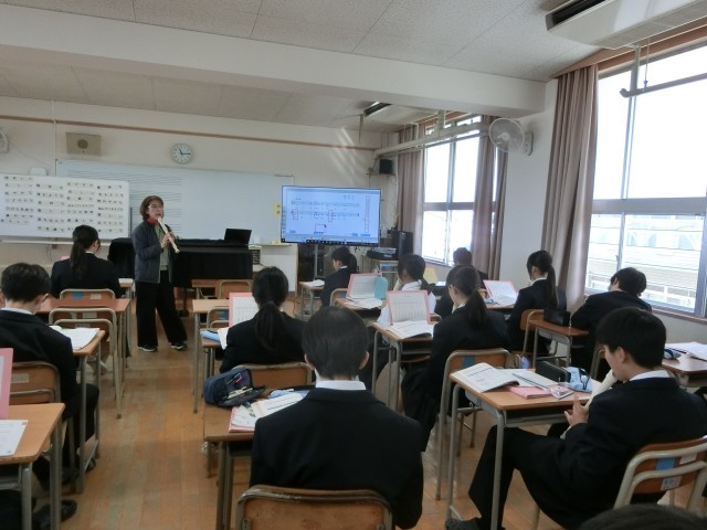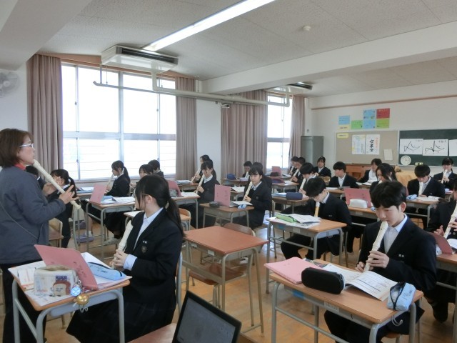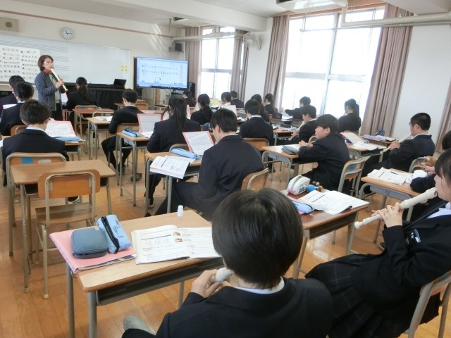 音楽室からリコーダーの美しい音色が聞こえてきました。1年生の皆さんが「虹の彼方に(オーバーザレインボー」を演奏しています。1939年のミュージカル映画「オズの魔法使い」の劇中歌で、今も世界中で愛されている名曲ですね。