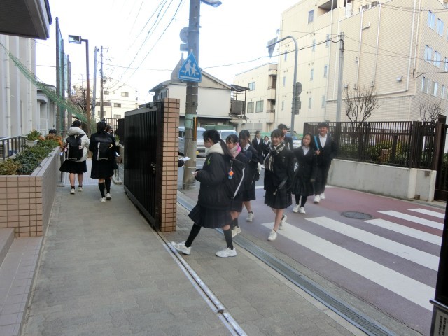 未明の雲がきれて青空が顔をのぞかせる朝。今朝も皆さん元気に登校してきました。今日の午後、姉妹校の甘泉中学校との「絆の旗」のコンテストが行われます。各学年から選ばれたデザインをみんなの投票で選びます。どんな作品が登場するか楽しみです。