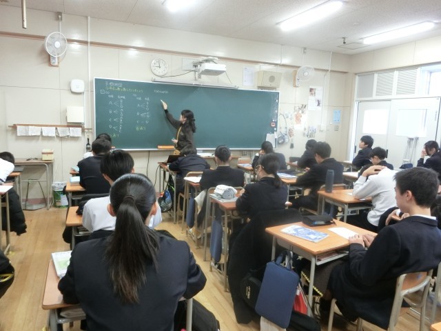 2年生数学科で「確率」の授業が始まりました。「10円玉を2枚同時に投げて、ともに表が出る確率」を求める場合、「表・表」や「表・裏」など