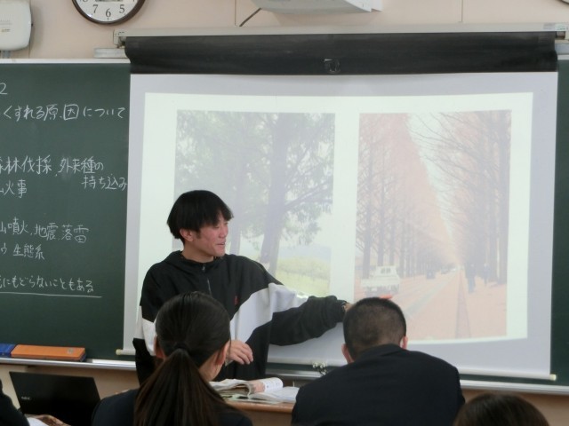 3年生理科の授業で「生態系」について教わります。ある地域に暮らす全ての生き物とそれらの生き物をとりまく環境全体を意味売るそうです。近年、動植物の乱獲や環境破壊など人間の行いによる「生態系破壊」が課題となっています。私たち自身、どう行動すべきかを考えましょう。