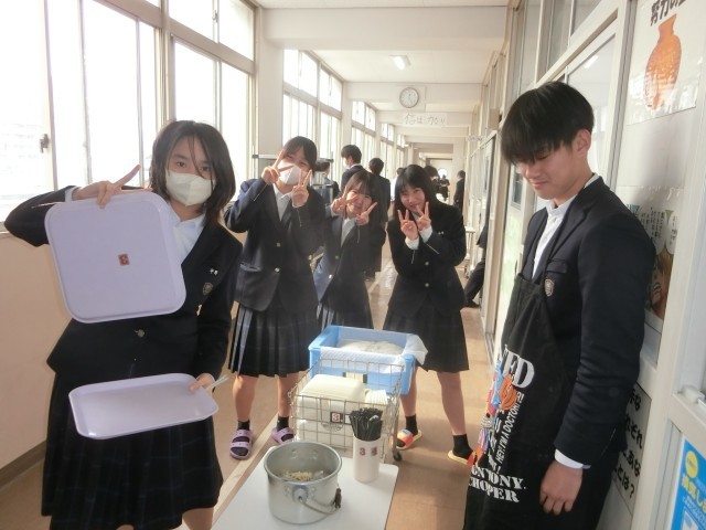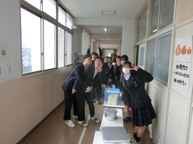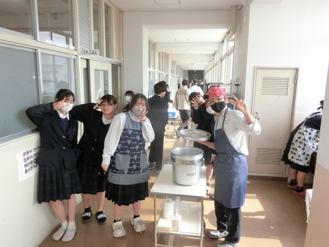 午前の授業が終わり、3年生の皆さんが給食の配食を始めました。今日は「ヤンニョムチキン・豆腐のスープ・切干大根のナムル」の韓国風メニュー。鶏肉をコチュジャンやニンニクで甘辛く味付けしたヤンニョムチキンは韓国の人気料理。とても美味しいのでご飯がすすみますよ。