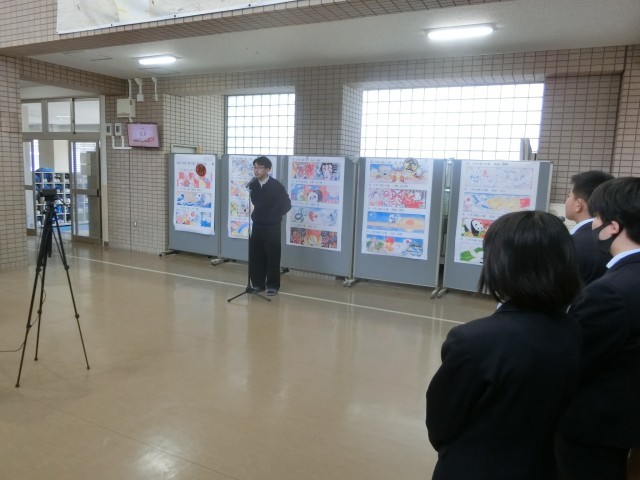 月曜日の朝は全校集会。今朝も教室と玄関ピロティをオンラインで結びます。3年生は先週の私立高校入試に続き、今週木曜日に「公立高校特別選抜入試」が実施されます。また来週から1,2年生で「学年末テスト」が始まります。くれぐれも体調には気をつけて、テスト(受験)に臨んでくださいね。