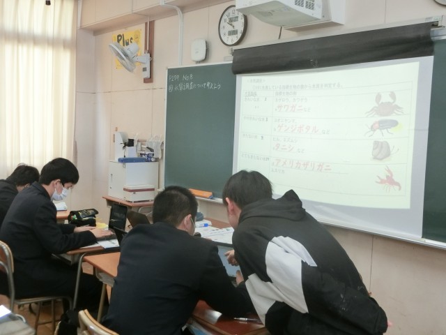 3年生理科の授業で川に生息している生き物から、川の状態を予想します。カゲロウやサワガニ、ホタルはきれいな川で、タニシやアメリカザリガニは汚れた川で見かけます。特定の環境状態がわかるこれらの生き物を「指標生物」と呼ぶそうですよ。