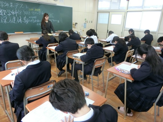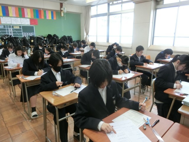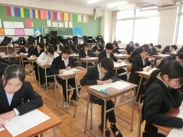 現在1年生で「数学」のテストが実施されています。テストではベーシックな計算問題に加え、立体の体積を求める問題や作図問題が出ているようです。以前、コンパスや定規を使って作図する授業がありましたね。先生の説明をよく思い出しましょう。
