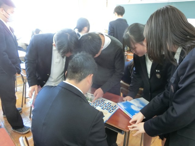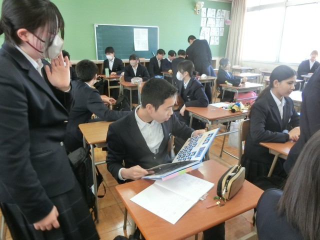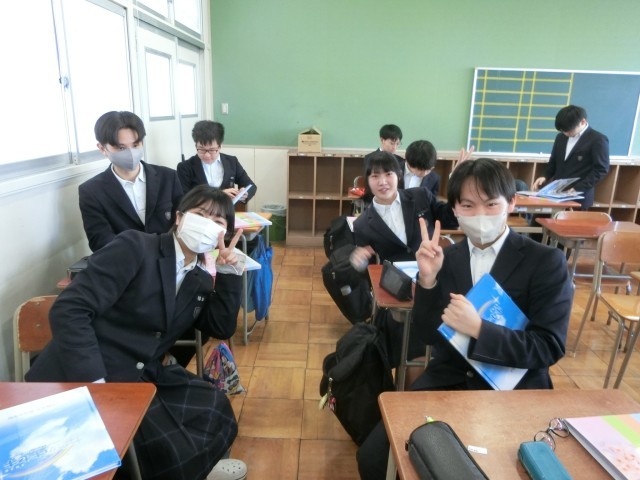 3年生の教室で「卒業アルバム」が配られました。中学校生活の思い出がぎっしり詰まったアルバムです。まずは学級写真に写っている自身のようすを確かめます。皆さん、素敵に写っていましたか?