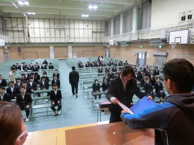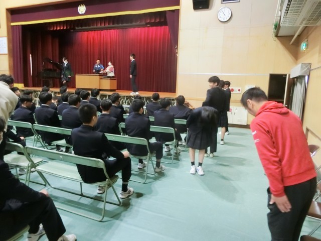 「卒業証書授与」では自席から壇上へと移動し、証書を受け取る流れを練習します。名前を呼ばれた時の返事や礼、証書を受け取るタイミングをしっかりと覚えてくださいね。