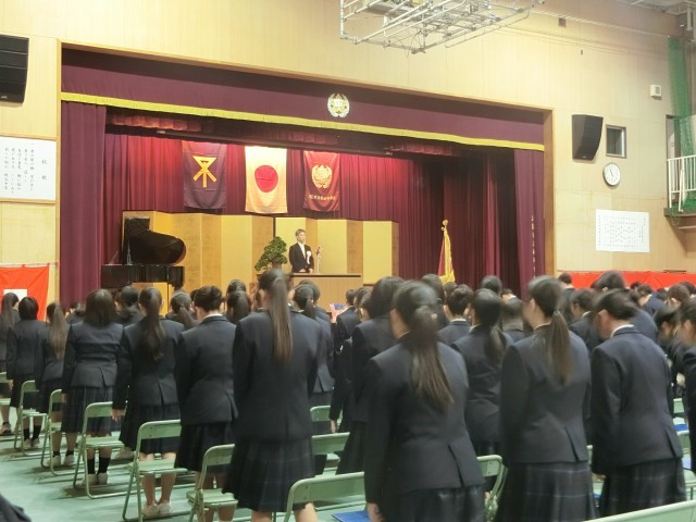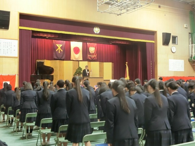 学校長式辞、PTA会長祝辞と式が進みます。卒業生の皆さんが、新しい世界でより一層飛躍するよう、激励のメッセージが伝えられました。