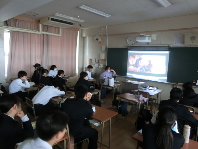 2年生英語科でディズニーのアニメ映画を鑑賞中。言語は「英語」ですが字幕がついているので大丈夫。授業で習った表現が出てくるので、聞き耳をたてて鑑賞しましょう。この冬にパート2が公開され、大ヒットしましたね。