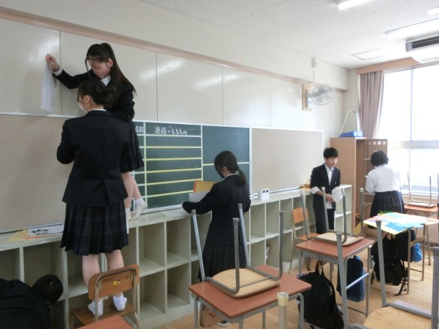 2年生の皆さんも大清掃を頑張っています。いろんな思い出を作った教室も今日が最後。来年はどのフロアで過ごすのでしょうね?1年間みんなと楽しく過ごせた感謝の気持ちを込めて、すみずみまで美しく!