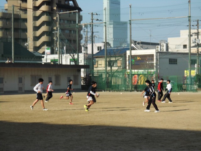 ラグビー部は、ゲーム形式でトライを奪うための戦術トレーニングをしていました。