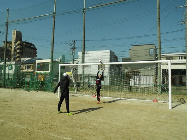 サッカー部では、ゴールキーパートレーニングやボールタッチの基礎、ロングキックの練習をしていました。