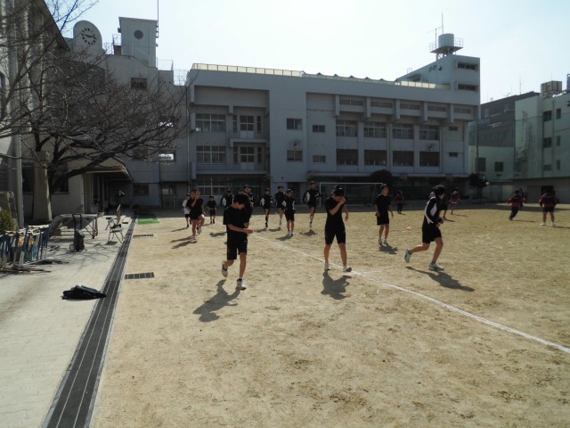 陸上部では、体感トレーニングの後ランニングをしながらのコーディネーショントレーニングをしていました。