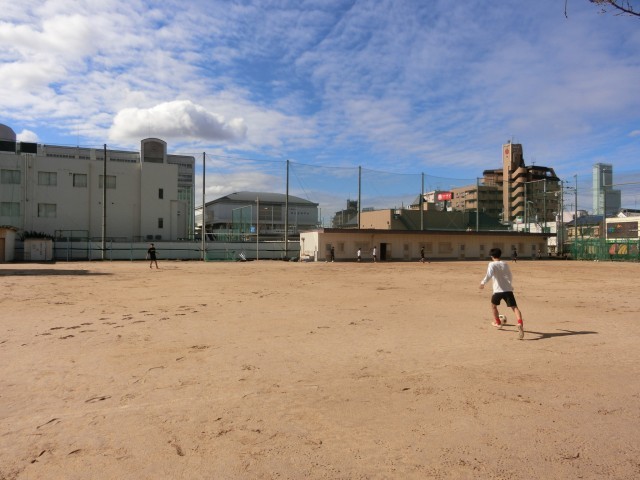 昨日の雨が上がり、青空が広がり始めた朝。運動場ではサッカー部の皆さんの練習が始まりました。まずはウォーミングアップから。軽めのパス回しで身体の調子を整えます。陽射しが届き始めると暖かくなりそう。こまめに給水をとってくださいね。
