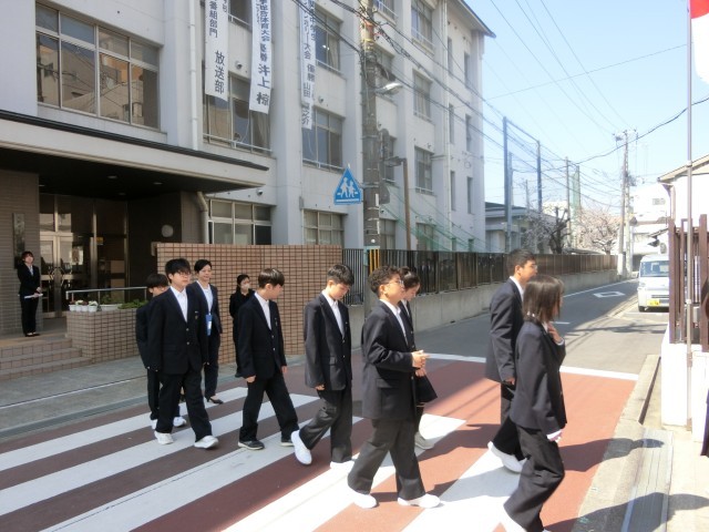 受付を済ませ、武道場でスタンバイしていた新入生が式場へと向かいます。初めて会うクラスメイトも多く、少しドキドキしますね。