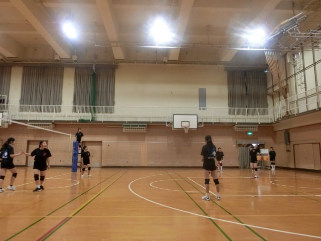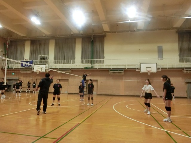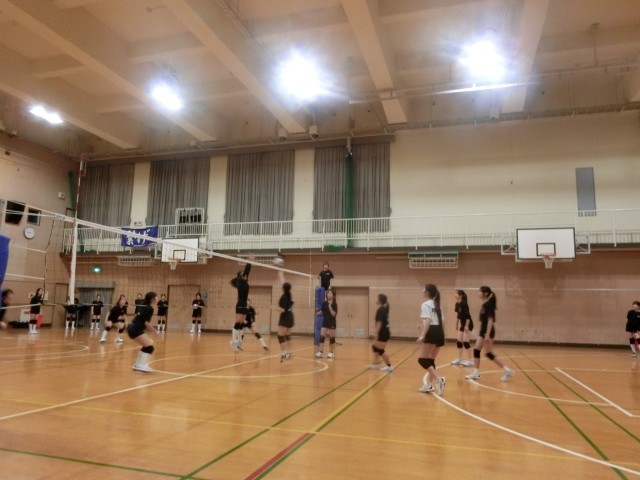 体育館では女子バレーボール部が練習試合を行っています。春休みの最終日、他の中学校のバレー部の皆さんを招いてお互いにスキルを高めます。春季大会にむけて、着々と力を伸ばしていますね。