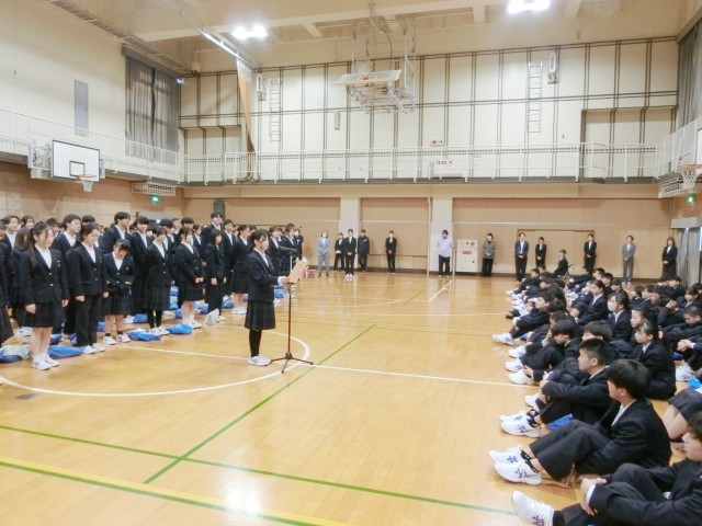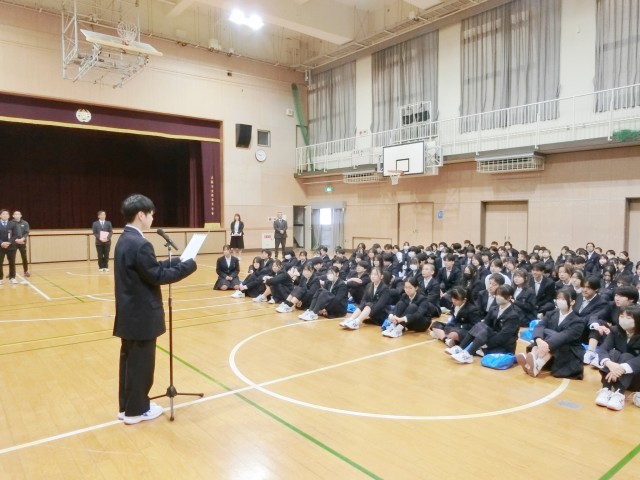 新入生と在校生による「対面式」が始まりました。入学式に参列した在校生が限られていたので、全員が一堂に会するのはこれがはじめて。これから部活動や生徒会活動など、学校生活のいろんな場面でお世話になりませすね。「先輩の皆さん、どうぞよろしくお願いします!」