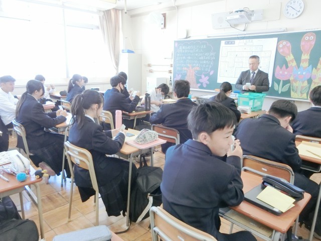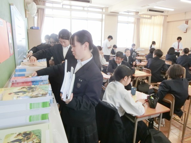 2年生の教室でも「学級活動」が行われています。現在は新しい教科書が配られています。新クラスとはいえ、昨年度の活動を通して、知っている人も多く打ち解けるのも早そうです。新しいクラスでの活動がより活発で充実しますように!(上から)1組・2組・3組