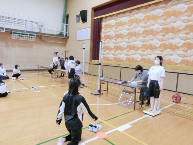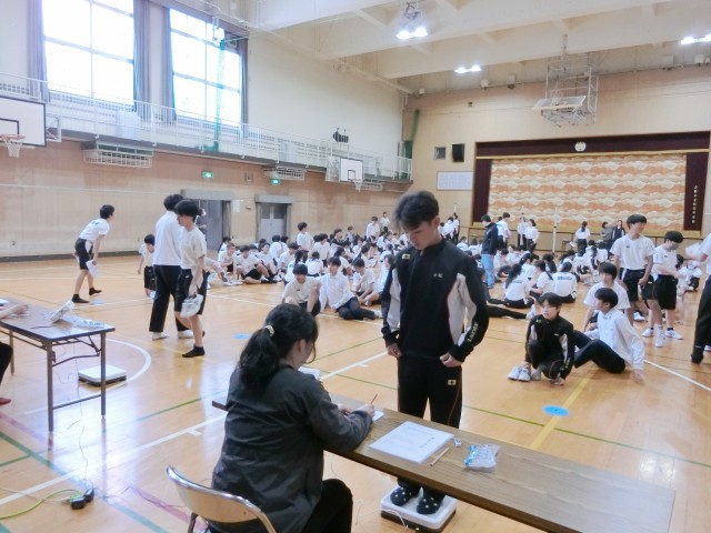 3年生の皆さんも「発育測定」を受けています。中学校で測定するのは5回目。入学時に比べると、ずいぶん大きくなりました。皆さん、すっかり慣れたものでスムーズに取り組めているようです。何事にも早めに行動する習慣が身に付くと良いですね。