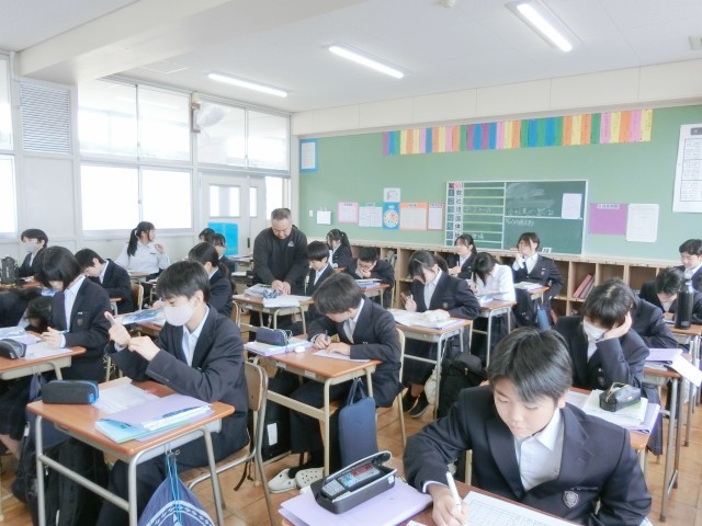 2年生数学の授業で「マジックシート」の謎を解いています。マジックシートでは、最初にどんな数を選んでも答えが同じになるそうです。いくつかの指示にそって計算するのですが、そのからくりを見つけることができるでしょうか?皆さんの知恵が試されています。