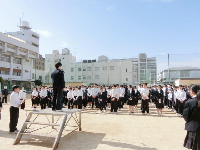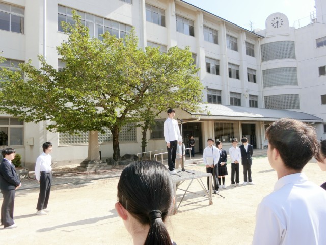 月曜の朝は全校集会。今朝は生徒会各委員会の代表から先週行われた専門委員会・生徒議会で話し合われた内容や月間目標の報告がありました。みんなが過ごしやすい学校生活のために頑張ってくれています。皆さん、しっかりと協力しましょう!