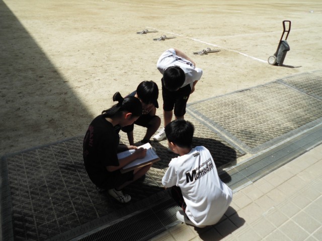 陸上部は、短距離のタイムを計って確認しています。