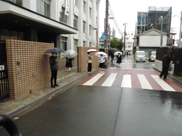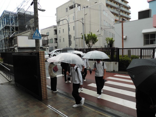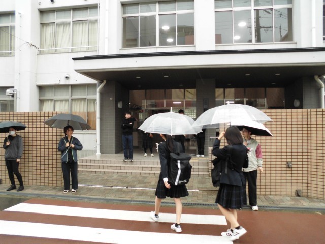 あいにくの雨模様で傘をさしながらの登校となりました。天気予報では曇り時々雨なので、帰りには止んでいるといいですね。そのときは傘を持ち帰ることも忘れないでください。