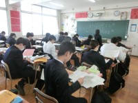 3年生国語の授業で、3学期に配られた学習プリントを整理しています。漢字や四字熟語...