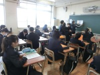 2年生英語科でディズニーのアニメ映画を鑑賞中。言語は「英語」ですが字幕がついてい...