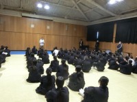 1年生の皆さんが武道場に集まってきました。これから今年度最後の学年集会を行います...