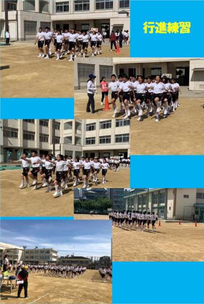 各学年体育の時間と違い、他学年の様子がわかり、どの学年も意識を持って行進の練習が行えました。