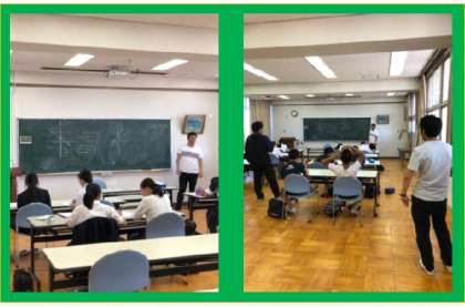 今日は2,3年生対象で数学と社会でした。参加生徒は積極的に授業を受けています。木藤先生、角石先生も手伝ってくれています。