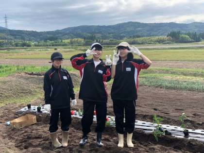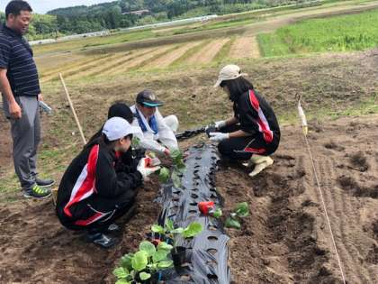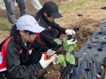 オクラやナスなどの野菜の植付け作業です。