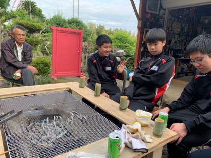 名産のキビナゴを焼いています。(川内地区)