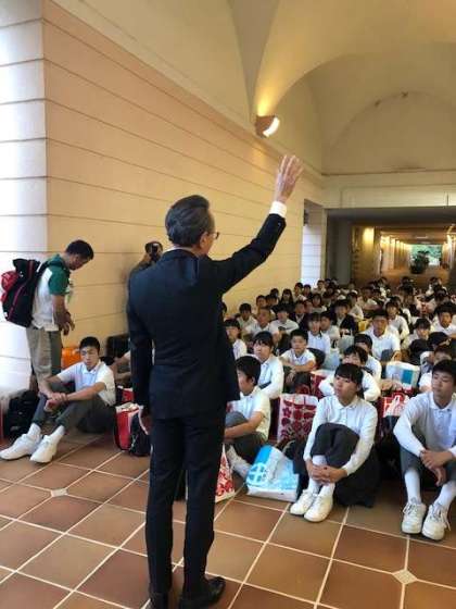 支配人様から歓迎のお言葉をいただき、生徒代表があいさつしました。