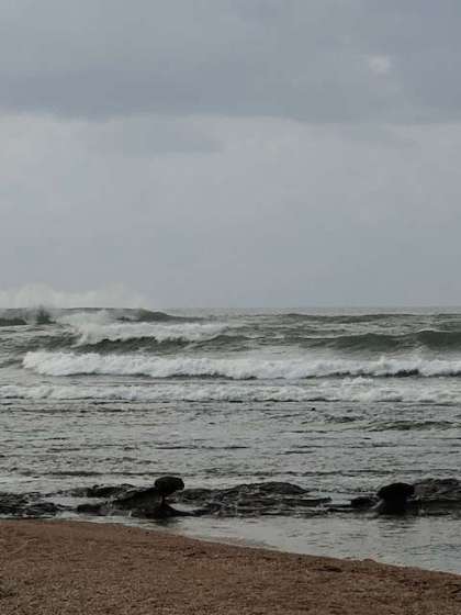 天候は良いのですが、風が強く、波も高いため、離岸流に持って行かれる可能性が高いため、安全確保を優先しマリンスポーツを残念ながら中止となりました。