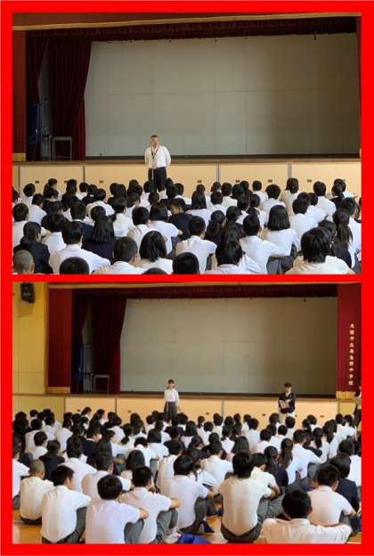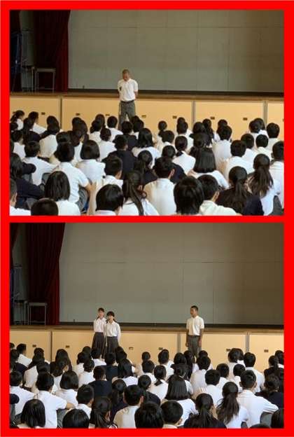 体育委員、生徒会、牛ノ濱先生から注意事項がありました。