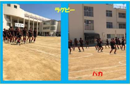 3番目の行進はラグビー部。ラグビーでは有名なオールブラックスの試合前に行われる民族舞踊である「ハカ」を披露しました。
