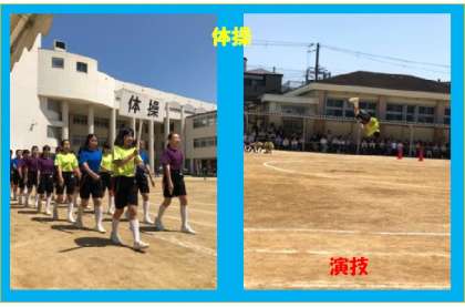 体操部は行進後、1人から3人で体操の技を披露しました。