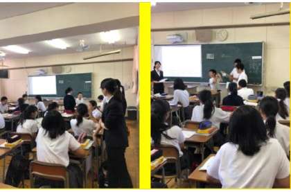 5月27日から始まった教育実習も明日で最後となりました。英語科の井上さんの1年1組の授業の様子です。ジェスチャーをつけながら読ませたり、ペアで活動させたりと工夫が見られました。