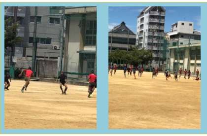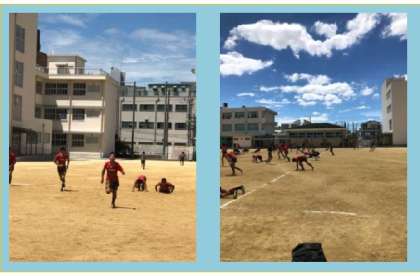 今日も気温が高いですが、グランドでは新東淀中学校ラグビー部と合同練習をしています。暑さに負けず、秋の大会での優勝を目指して頑張っています。
