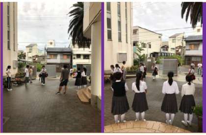 生徒会役員、教職員が毎日門に立ち、あいさつをかけています。