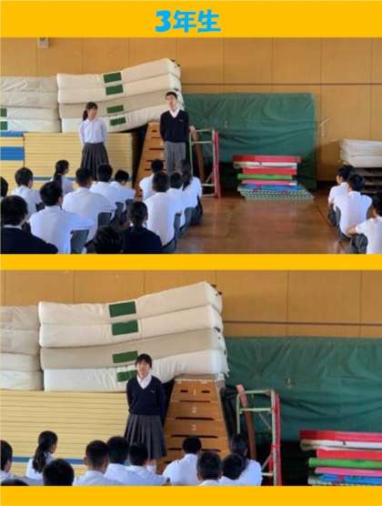 3年生は、イラスト文芸部とコーラス部の部長がこれまでのクラブ活動での学んだことと今後の抱負を述べました。