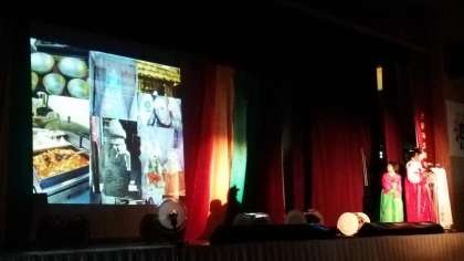 【舞台発表の部】1年生は、群読・全体合唱。2年生は、合唱コンクール・全体合唱。3年生は、各クラスの劇。また、生徒会、朝文研(夜間学級も参加)、コーラス部の発表がありました。